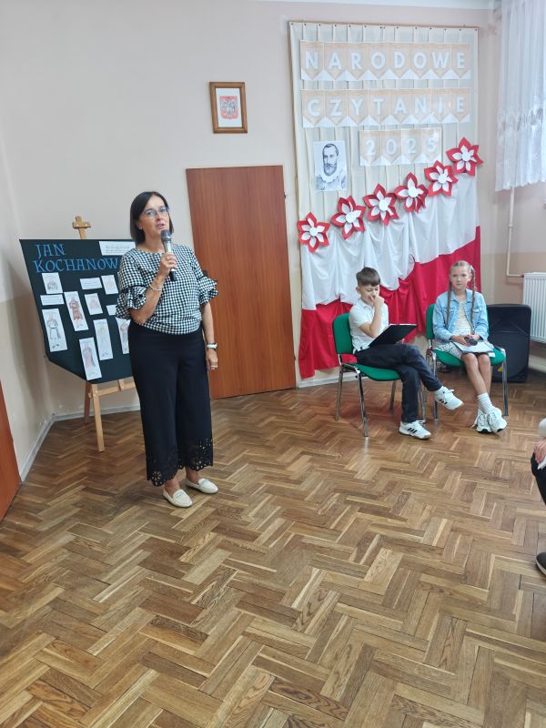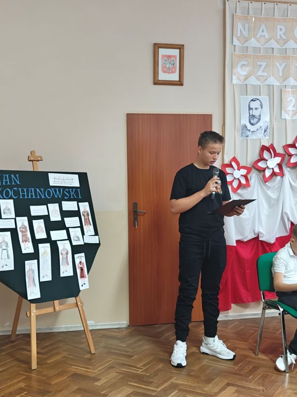 W spotkaniu wzięli udział uczniowie oraz nauczyciele szkoły, którzy wysłuchali utworów Jana Kochanowskiego zaprezentowanych przez uczniów oraz Panią Sylwię Możdżeń . Zebrani mogli również podziwiać prace plastyczne oraz kaligraficzne wykonane przez najmłodszych.