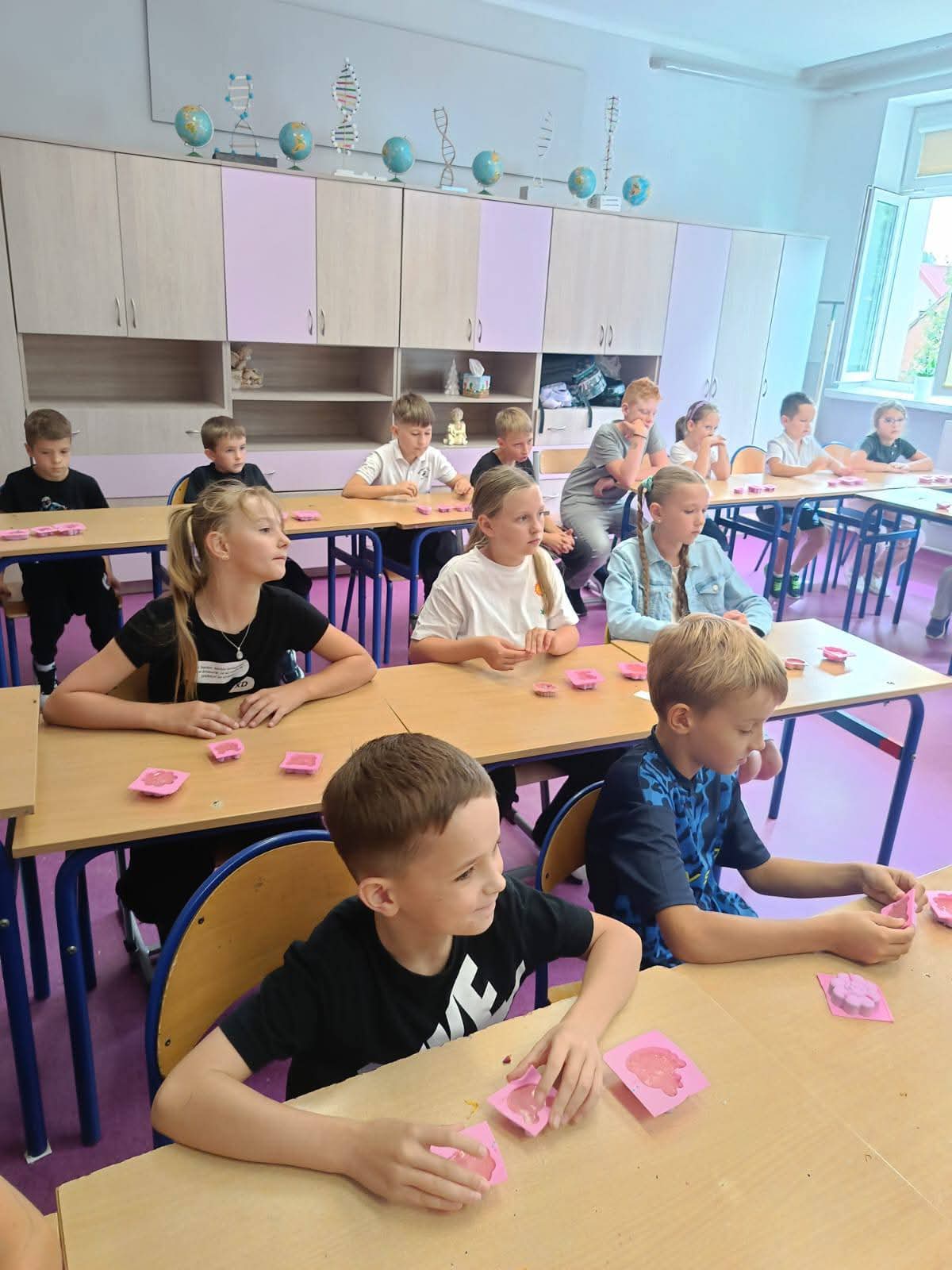Dzis w Naszej szkole odbyły się warsztaty mydlarskie. Było to wyjątkowe wydarzenie, które od samego początku wzbudziło duże zainteresowanie wśród dzieci. Uczniowie dowiedzieli się, z jakich składników powstaje mydło i jakie właściwości mogą mieć poszczególne dodatki. Następnie każdy uczestnik mógł samodzielnie przygotować własne, niepowtarzalne mydełko, wybierając kształt, kolor oraz zapach.