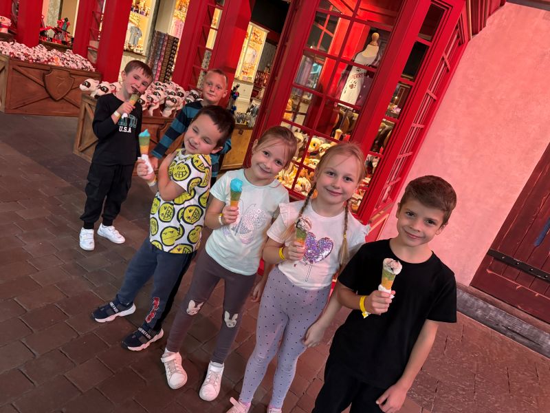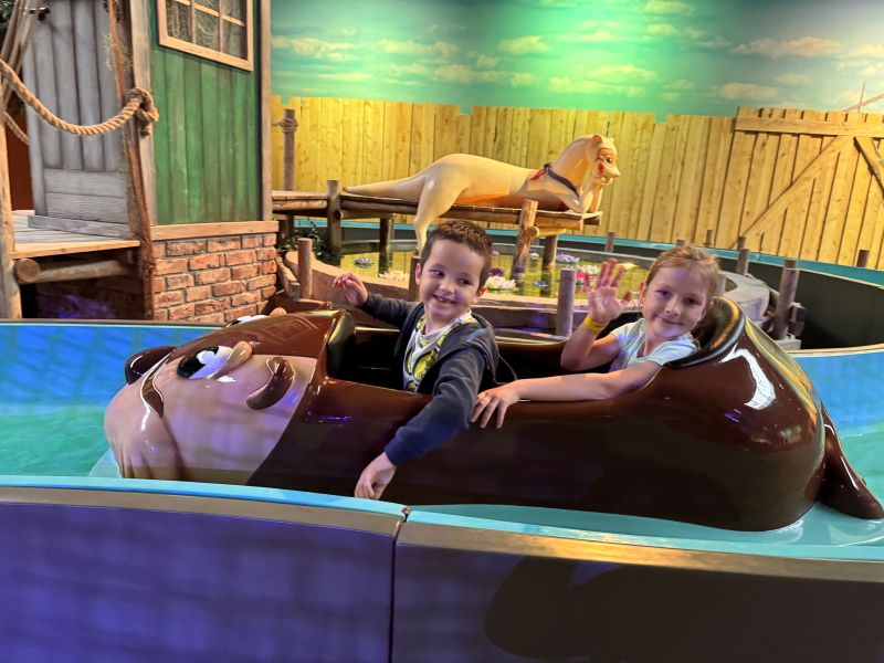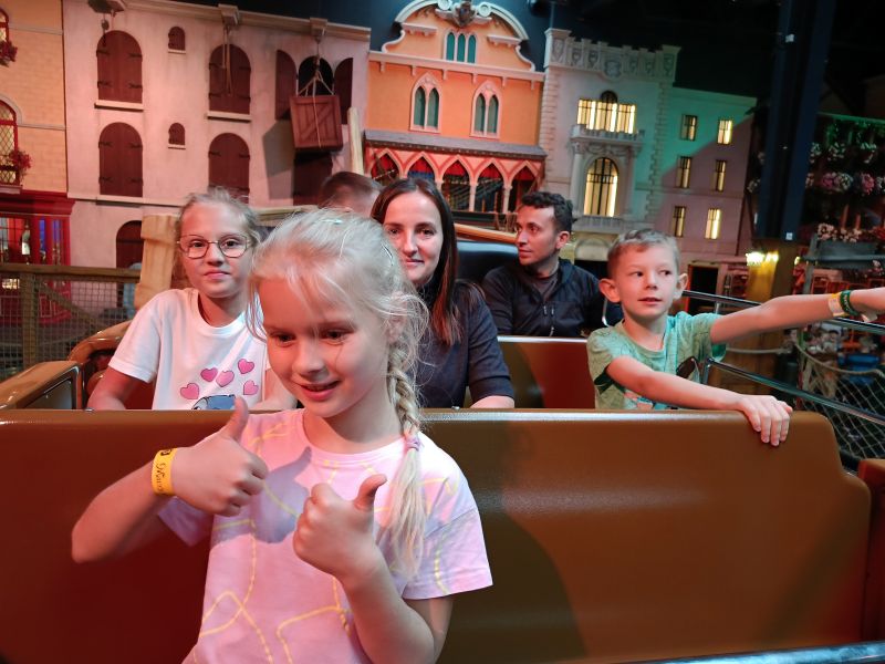 Podczas pobytu dzieci miały okazję korzystać z wielu atrakcji – karuzel, zjeżdżalni, torów przeszkód oraz tematycznych stref zabaw. Największym zainteresowaniem cieszyły się kolejki, łódki oraz kolorowe place zabaw. Nowoscią podczas wyjazdu było kino sferyczne. Ogromny ekran w kształceie kopuły otaczał widzów ze wszystkich stron. Na dzieciach zrobiło to ogromne wrażenie czuły się jakby przeniosły sie w sam środek filmu.