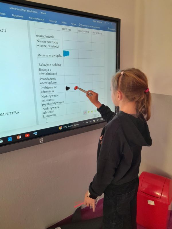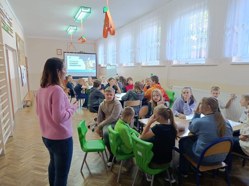 Przeprowadzono warsztaty dla klas IV- VIII, które miały na celu wywołać dyskusję i zaangażować uczniów do podejmowania działań związanych z przygotowaną tematyką. Na warsztatach uczniom zostały również przypomniane standardy ochrony małoletnich oraz dowiedzieli się jakie procedury i osoby są w placówce odpowiedzialne za ich bezpieczeństwo.