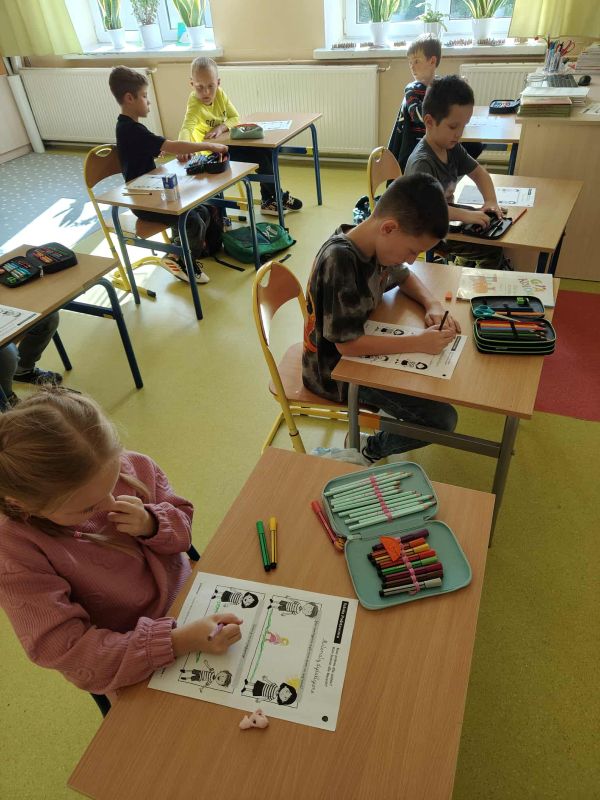 Uczniowie klas I- III skupili się na sferze emocjonalnej opierając się na umiejętności nazywania emocji oraz na ćwiczeniach integracyjnych mających na celu budowanie akceptacji i pozytywnego wizerunku każdego dziecka w grupie.