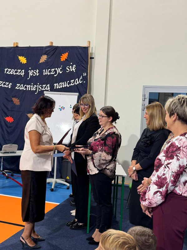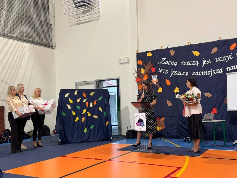 przekazano na ręce Pani Dyrektor, która podkreśliła w swoim przemówieniu jak ważna jest rola każdego pracownika w budowaniu wspólnoty szkolnej.