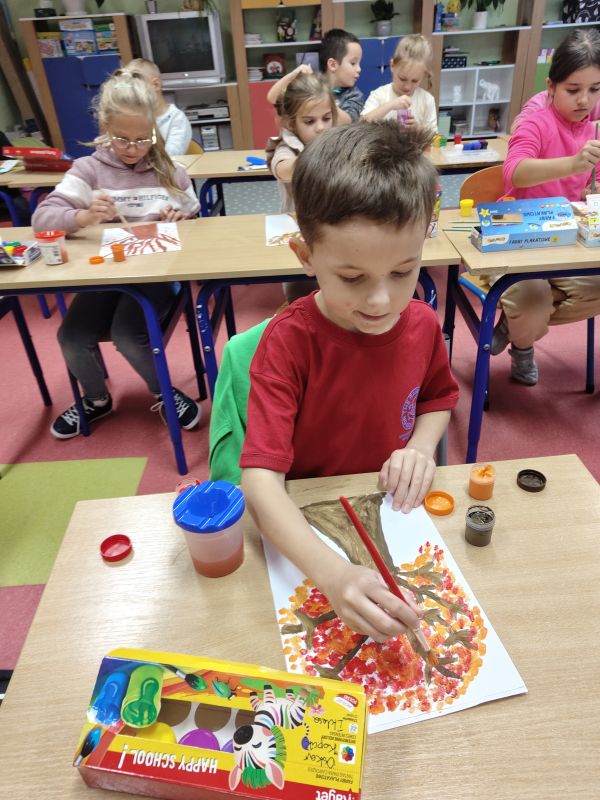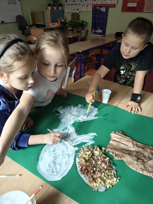W ramach działań z okazji Dnia Zwierząt jak i Dnia Drzewa przypadających na miesiąc październik, zostały wykonane różnorodne prace plastyczne. 🐭🐶🐱🐤🌳 🗣️ Odbyły się także rozmowy z uczniami, które miały na celu podkreślenie znaczenia drzew dla życia na 🌍 Ziemi i zachęcenie do ich ochrony poprzez sadzenie i pielęgnację. 🌳 Podczas zajęć świetlicowych nie zabrakło działań sensorycznych oczywiście z drzewem w roli głównej. 🌳🙌🌼💚