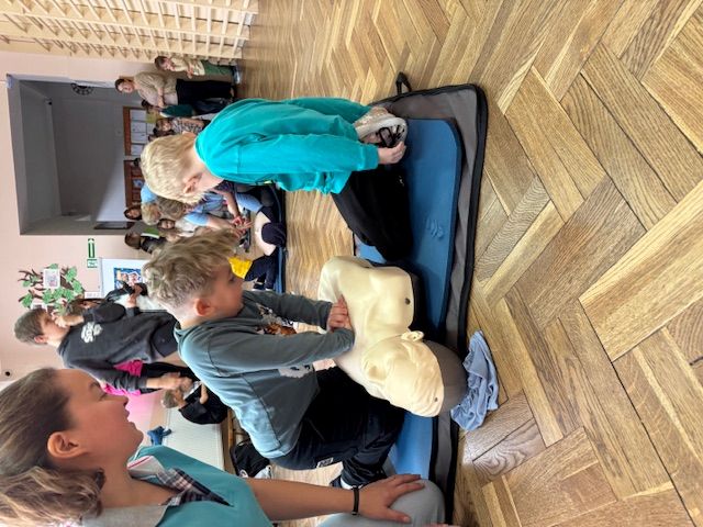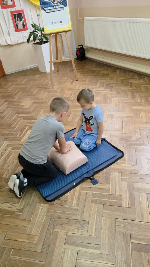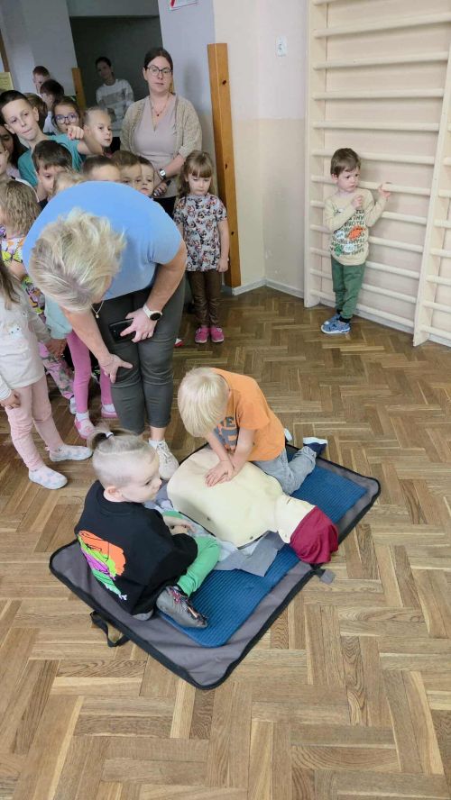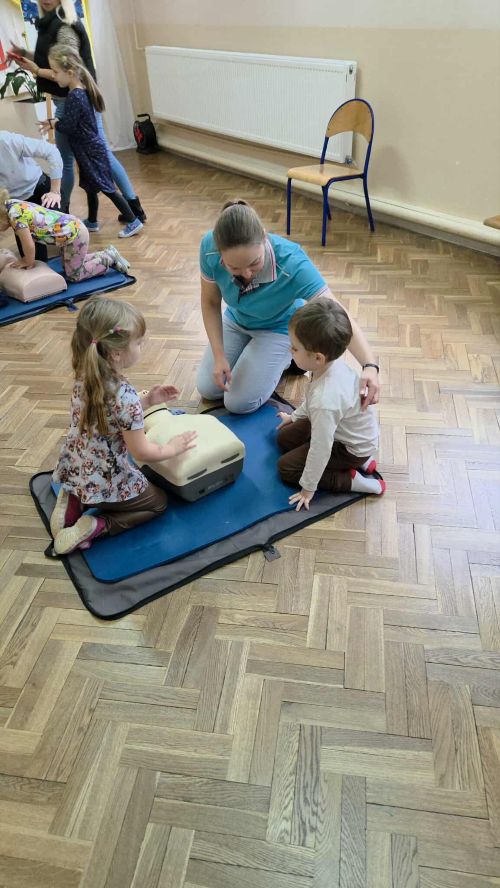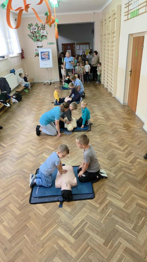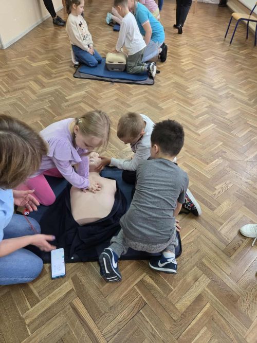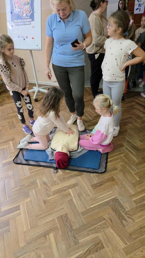 Z tej okazji w szkole odbyło się wyjątkowe wydarzenie – biciu rekordu w resuscytacji krążeniowo – oddechowej. Wzięli w nim udział uczniowie, nauczyciele, pracownicy szkoły oraz chętni rodzice. Akcja ta, nie mogłaby się odbyć bez wsparcia Ratowników Kwalifikowanej Pierwszej Pomocy, pań: Wioletty Rutkowskiej, Żanety Iskrzyńskiej – Popiołek i Elżbiety Borowieckiej. Do inicjatywy został wykorzystany nowoczesny sprzęt medyczny „Aed Rainer”. Dzięki ogromnemu zaangażowaniu i poświęconemu czasowi naszych gości, mogliśmy nie tylko kolejny raz podjąć wyzwanie bicia rekordu, ale przede wszystkim utrwalić swoją wiedzę i umiejętności w zakresie udzielania pierwszej pomocy. Sama akcja była bowiem poprzedzona ćwiczeniami praktycznymi z tego zakresu.