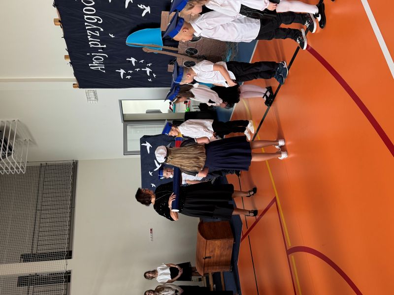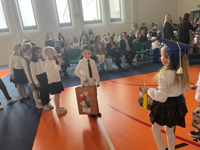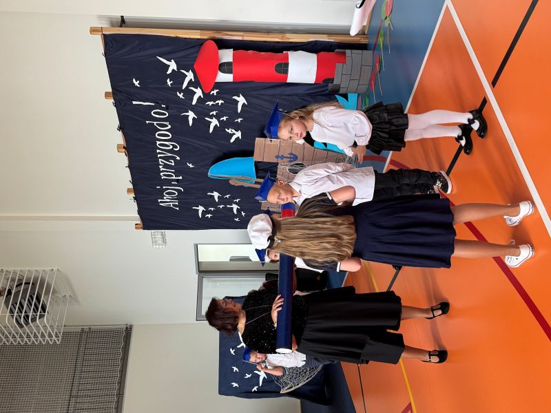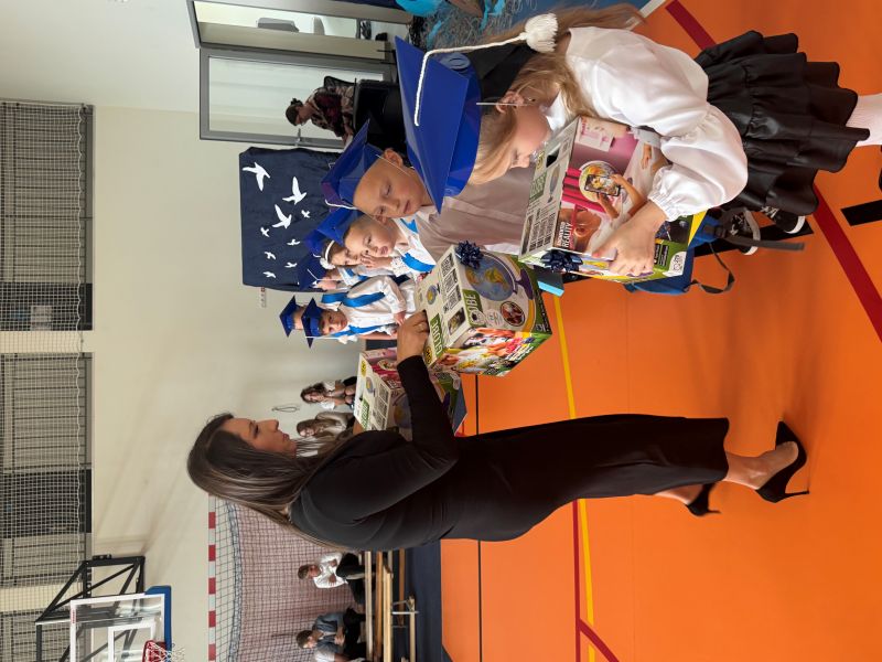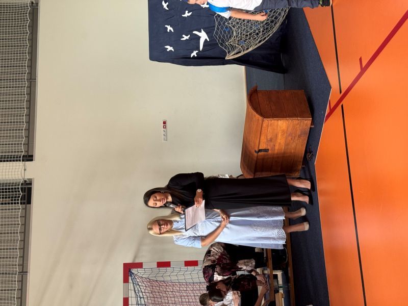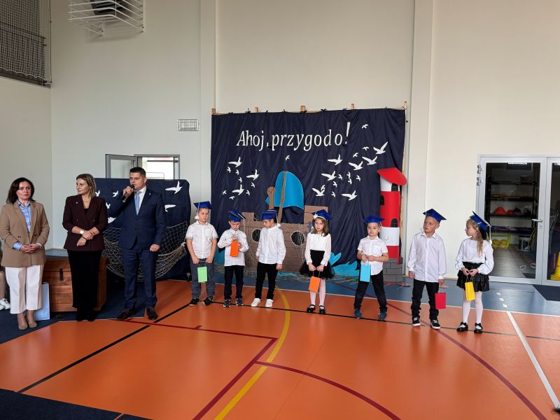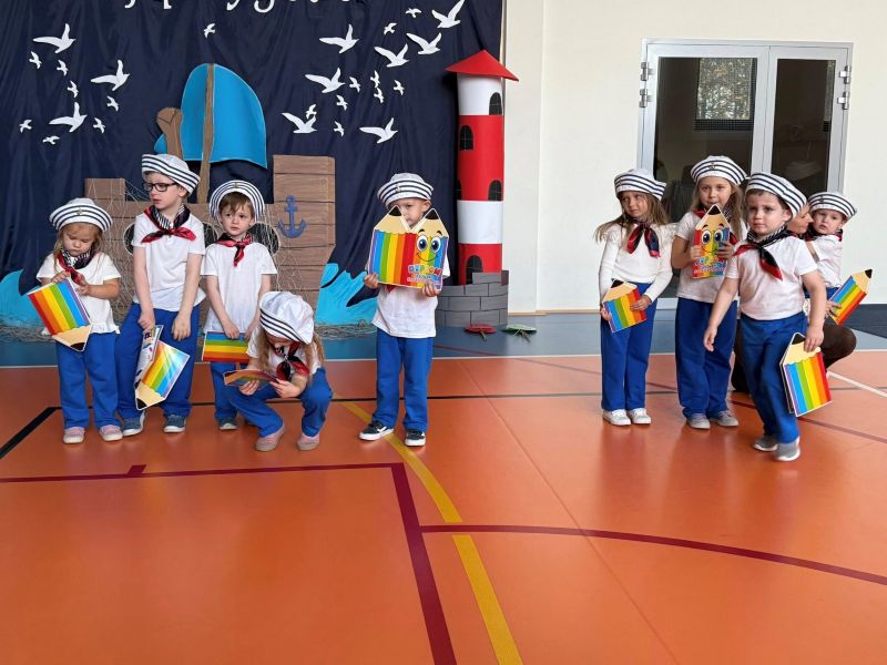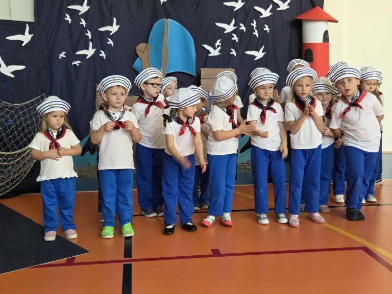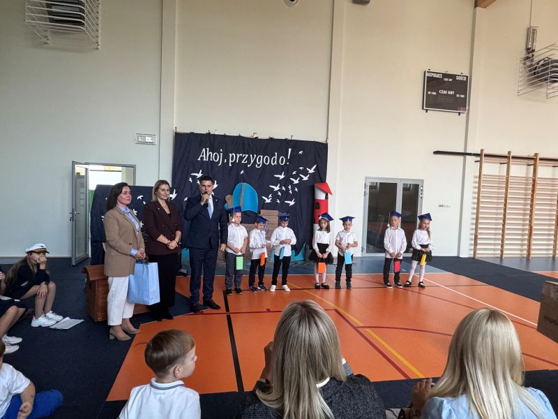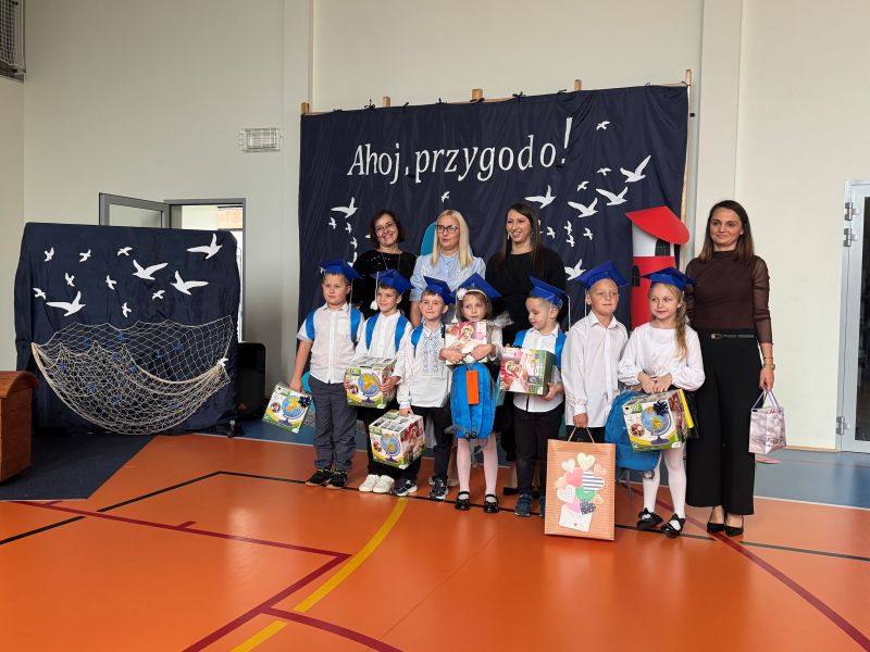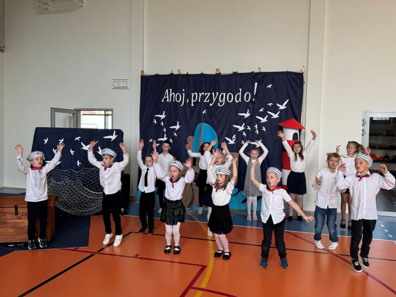 Tegoroczna akademia miała żeglarski motyw przewodni – najmłodsi zabrali nas w niezwykłą podróż po oceanie wiedzy i przygód. W barwnych strojach, z uśmiechem na twarzach, pięknie recytowali wiersze i śpiewali piosenki, zdobywając serca wszystkich obecnych. Kulminacyjnym momentem uroczystości było uroczyste ślubowanie uczniów klasy pierwszej oraz pasowanie na przedszkolaka, którego dokonała Pani Dyrektor. Po oficjalnej części dzieci zostały obdarowane upominkami od zaproszonych gości, Pani Dyrektor oraz starszych kolegów i koleżanek z klasy drugiej i trzeciej. Było wiele radości, uśmiechów i serdecznych gratulacji.