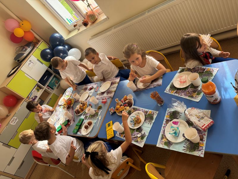 Na zakończenie rodzice przygotowali słodki poczęstunek, który był doskonałą okazją do wspólnych rozmów i świętowania w miłej atmosferze.To był piękny i wzruszający dzień, pełen emocji i dziecięcej radości.