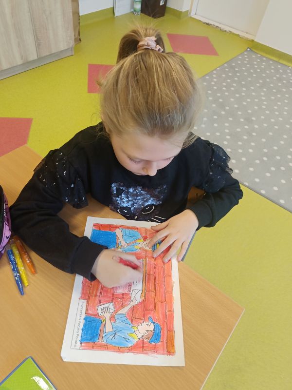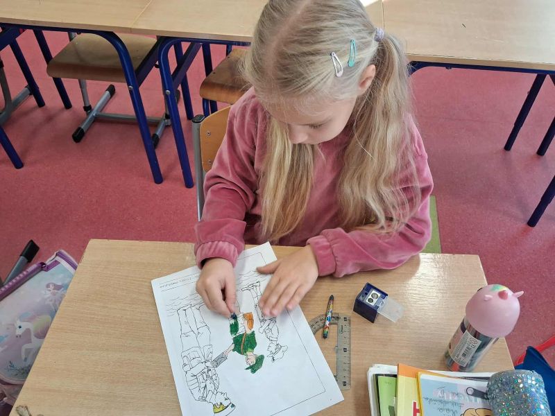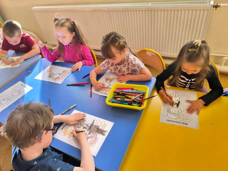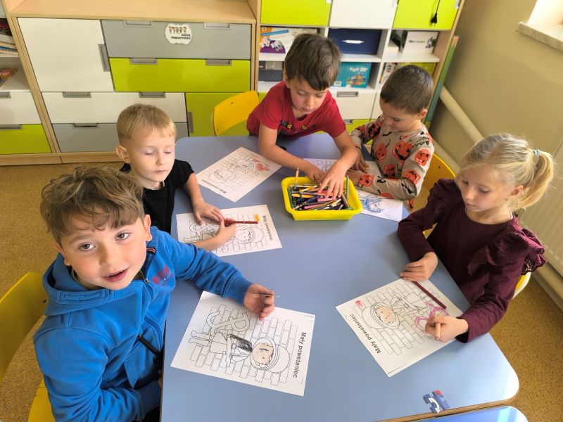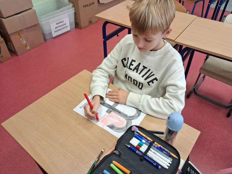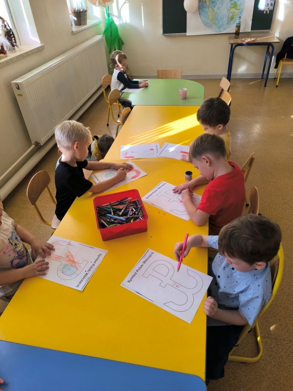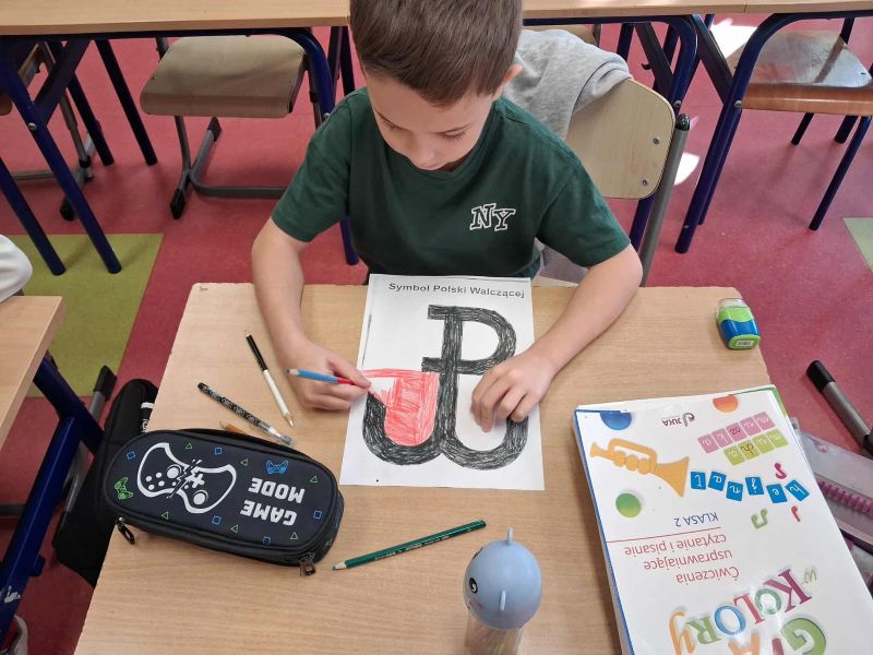 Chcąc upamiętnić 81 rocznicę Powstania Warszawskiego nasze przedszkole i szkoła kolejny już raz włączyła się w ogólnopolską kampanię. W ramach akcji przeprowadzone zostały zajęcia w przedszkolu i w klasach I-III, wprowadzające najmłodszych w tematykę Powstania Warszawskiego i losów Powstańców Warszawskich. Z pomocą krótkich filmów i opowiadań uczniowie z zainteresowaniem słuchali o wydarzeniach z roku 1944. Filmy poruszały bardzo ważne kwestie związane z przeszłością naszego kraju i zainspirowały do rozmowy na temat: kim jest i jakie cechy powinien mieć bohater, czy można zostać bohaterem, nawet, gdy nie ma wojny i jest się dzieckiem, czym jest i jaką rolę pełni patriotyzm. Następnie uczniowie wyjaśnili znaczenie takich pojęć jak: ojczyzna, wolność, niepodległość. Uczniowie na koniec zajęć zaakcentowali swój patriotyzm wykonując kolorowanki z których stworzono wystawkę.