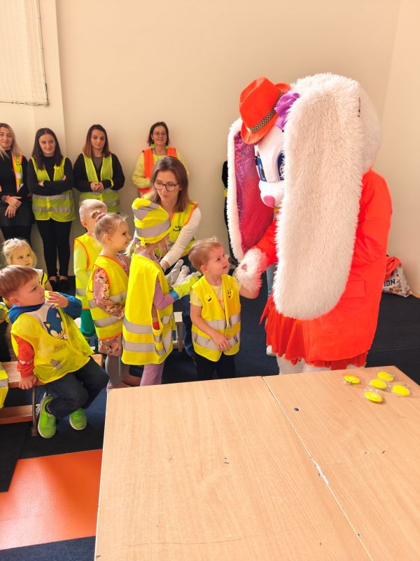 Tego dnia zorganizowaliśmy wiele akcji. Odbyły się m.in. prelekcje, quizy, warsztaty i zabawy związane z bezpieczeństwem na drogach. Zaprosiliśmy w tym celu p. policjanta i p. strażaka, którzy w interesujący sposób przybliżyli zebranym informacje dotyczące znaczenia noszenia odblasków a także byli ekspertami przy przeprowadzeniu "zadań stolikowych". Największą jednak niespodzianką Odblaskowego Dnia była wizyta sympatycznego Króliczka, który sprawił wszystkim uczestnikom ogromną radość rozdając im odblaskowe zawieszki.