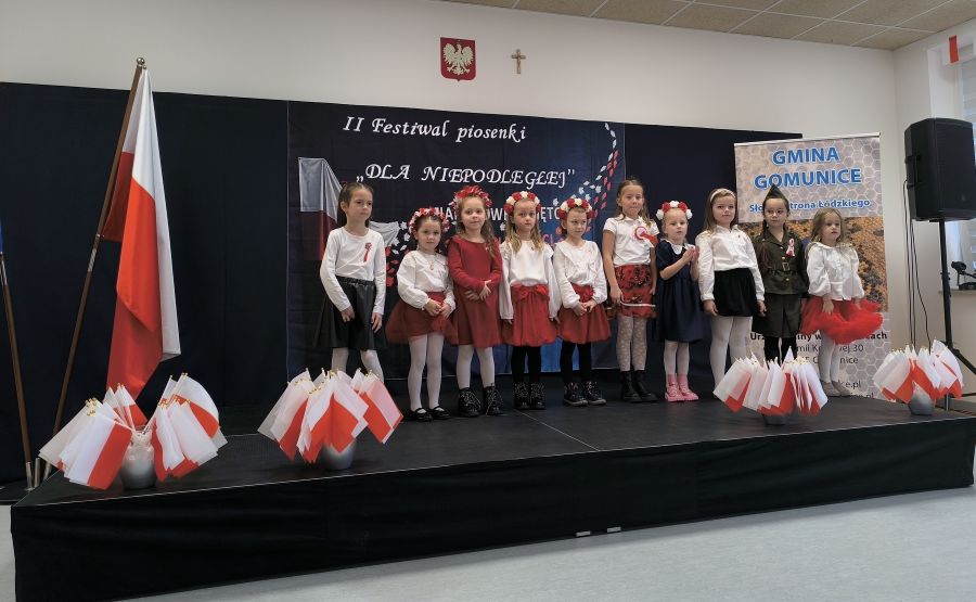 Dnia dzisiejszego nasze przedszkole miało zaszczyt wziąć udział w II Festiwal Piosenki Patriotycznej „Dla Niepodległej”, zorganizowanym w Publicznym Przedszkolu w Gomunicach. Wydarzenie to, pełne wzruszeń i podniosłej atmosfery, zgromadziło dzieci z różnych placówek, które poprzez śpiew wyrażały miłość do Ojczyzny oraz szacunek dla jej historii i tradycji.