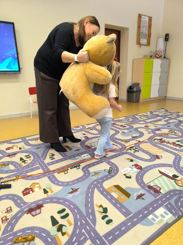 Podczas spotkania odwiedziła nas pani z biblioteki, która przeczytała przedszkolakom bajkę o misiu. Dzieci słuchały w skupieniu, a później chętnie rozmawiały o bohaterach opowiadania.