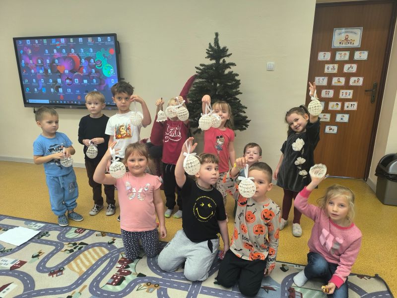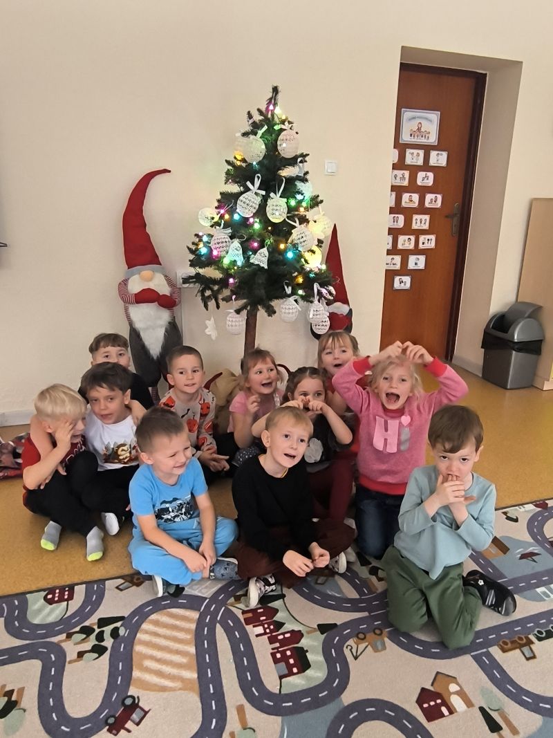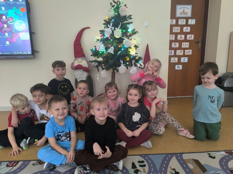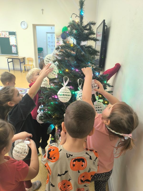 Pierwszym zadaniem było dziś ubieranie choinki. Dzieci z ogromną radością i zaangażowaniem dekorowały choinkę, wprowadzając do sali prawdziwie świąteczny nastrój. Wspólna praca sprawiła im wiele radości i stała się pięknym początkiem naszego adwentowego oczekiwania.