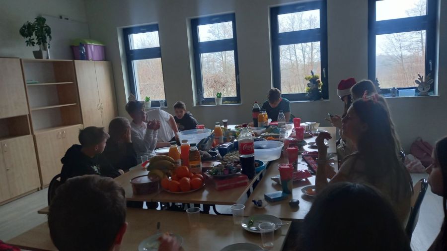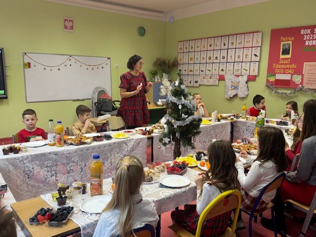 W dniu dzisiejszym odbyły się klasowe uroczystości wigilijne. Przy dźwiękach kolęd wszyscy uczniowie i nauczyciele złożyli sobie życzenia, po czym zasiedli do przygotowanych wcześniej smakołyków. Spotkaniom towarzyszył radosny nastrój zbliżających się Świąt Bożego Narodzenia.