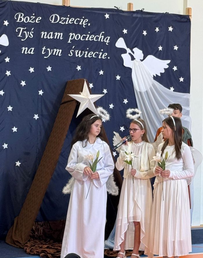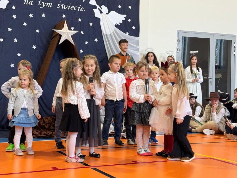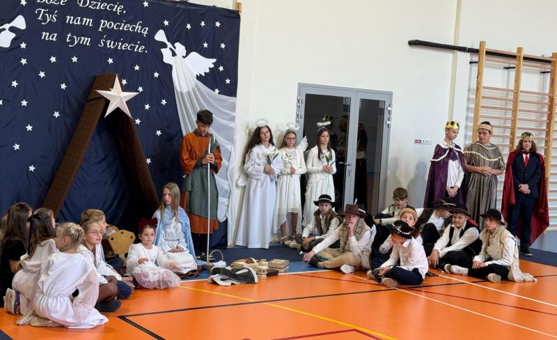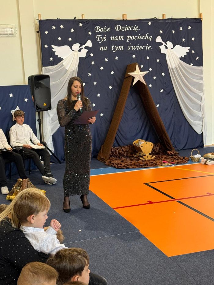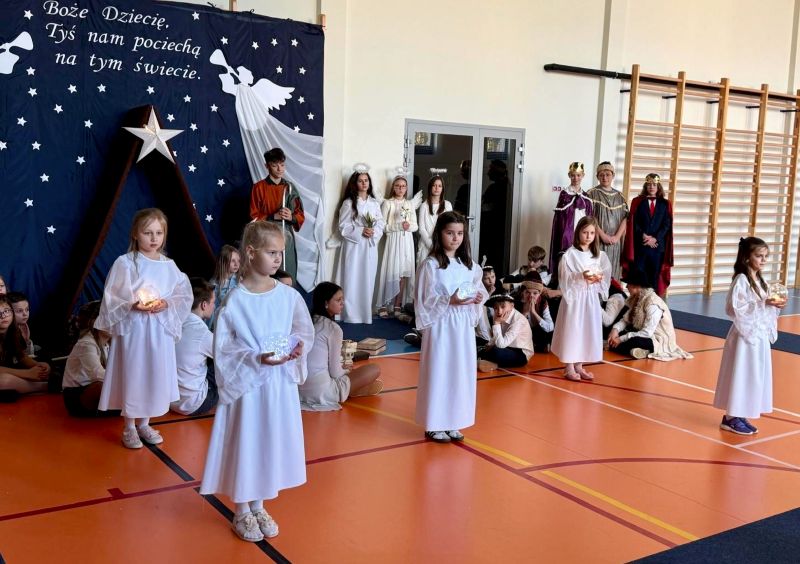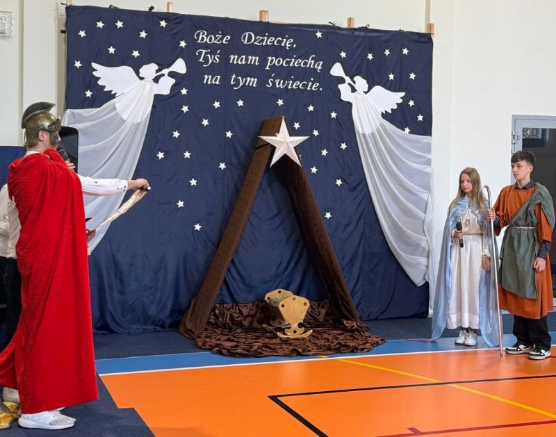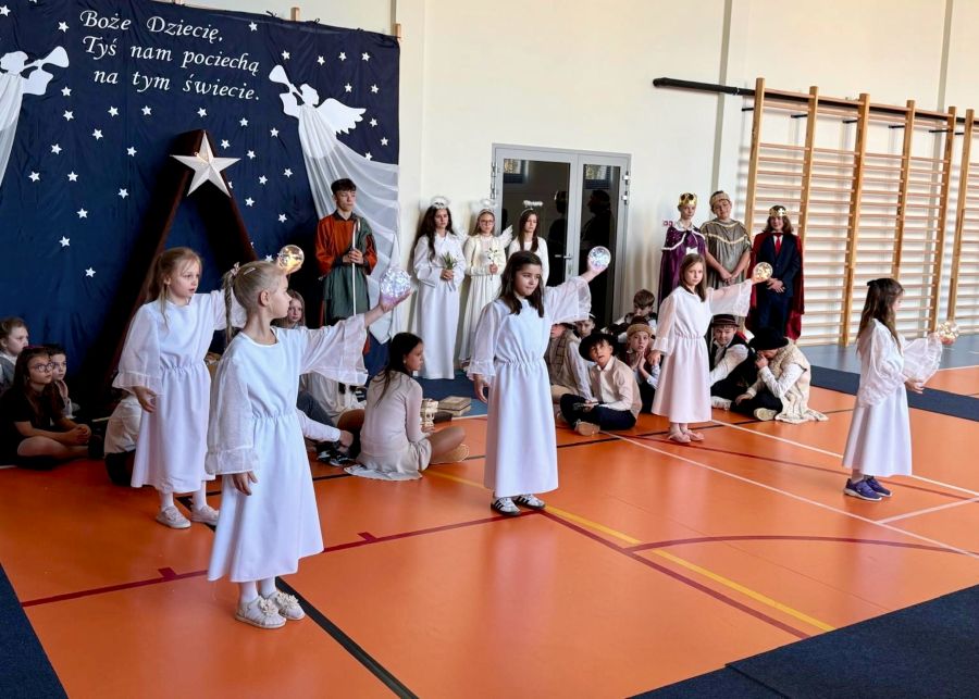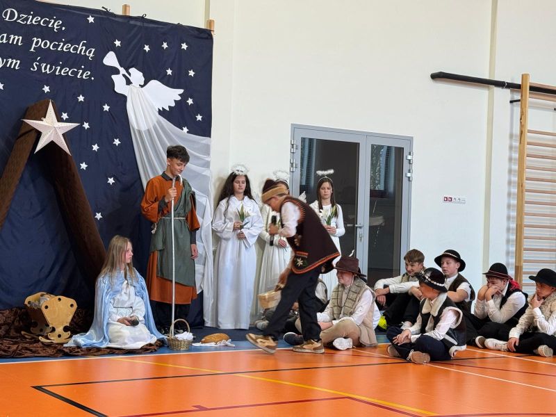 Osoby odpowiedzialne 🙌 za przygotowanie uroczystości jak co roku stanęły przed wyzwaniem wystawienia nowych, wspaniałych i oryginalnych jasełek. 🤱 A nie jest to takie proste, gdy tematyka - historia narodzin Jezusa w Betlejem - jest oczywiście niezmienna. 🌠 Tegoroczny montaż słowno-muzyczny 🎶 został przygotowany przez wychowanków przedszkola oraz uczniów naszej szkoły i opowiadał o tym dlaczego Maryja i Józef wybrali się do Betlejem, kto powiedział pasterzom o narodzinach Jezusa, a także kto złożył hołd Dzieciątku. 🎁 Swoje umiejętności młodzi artyści zaprezentowali przez inscenizację, śpiew oraz taniec. ✨ Przedstawienie, które emanowało spokojem i pokojem, bo takie było jego założenie, wprowadzało widzów w stan autentycznego przeżywania. ❤️ Całość dopełniła piękna dekoracja. ⭐🎄 Symboliczna, ale zarazem efektowna scenografia przenosiła widza do stajenki w Betlejem. 🌠 Choć nie było zmieniającej się scenerii, a wszystko rozgrywało się w ubogiej stajence, to urok tego wystroju w połączeniu z biblijnymi tekstami przenikał głęboko w serce. ❤️