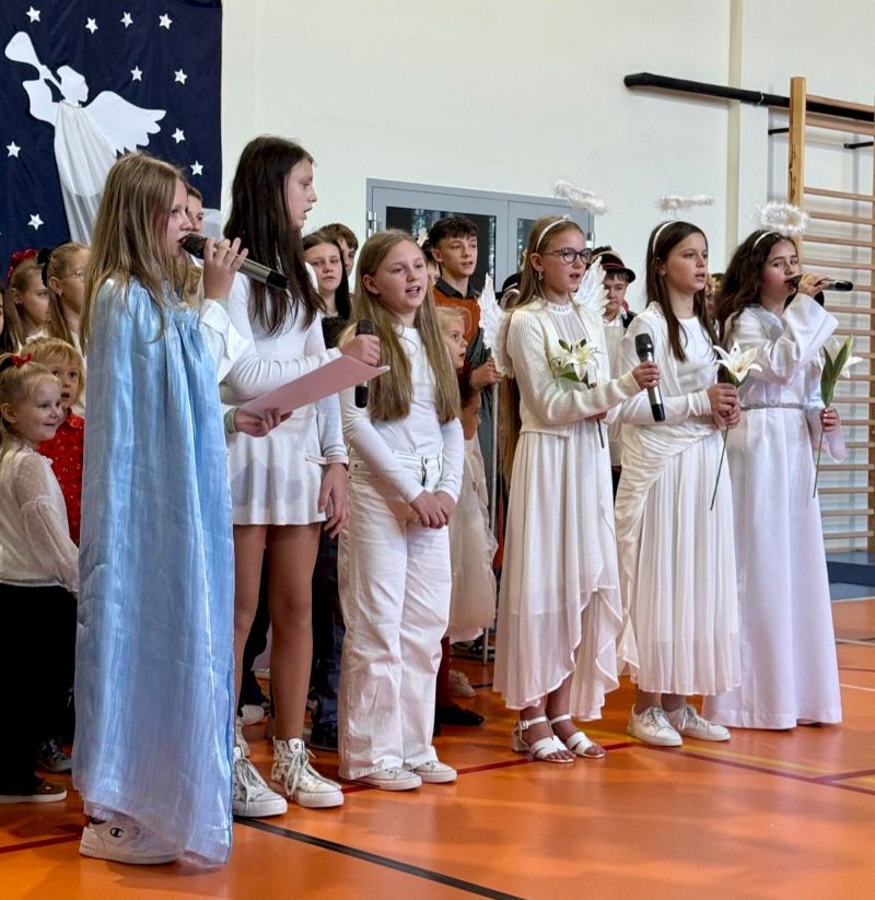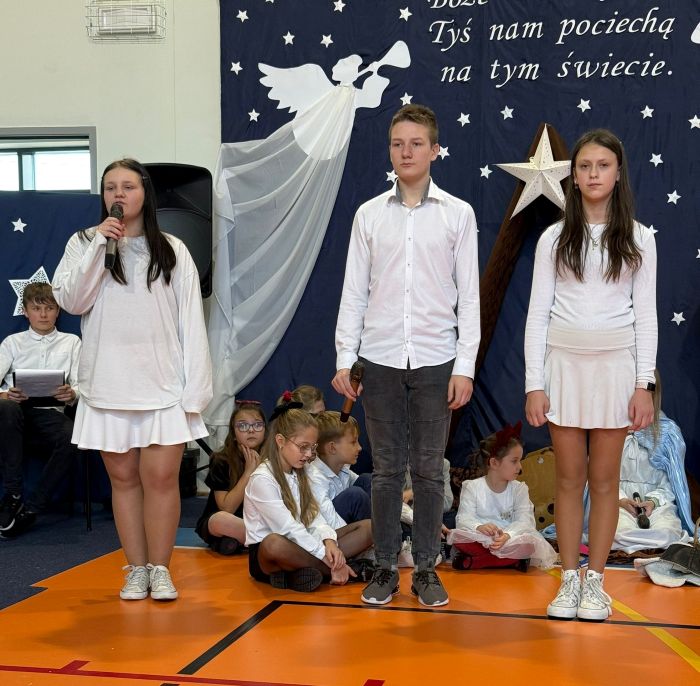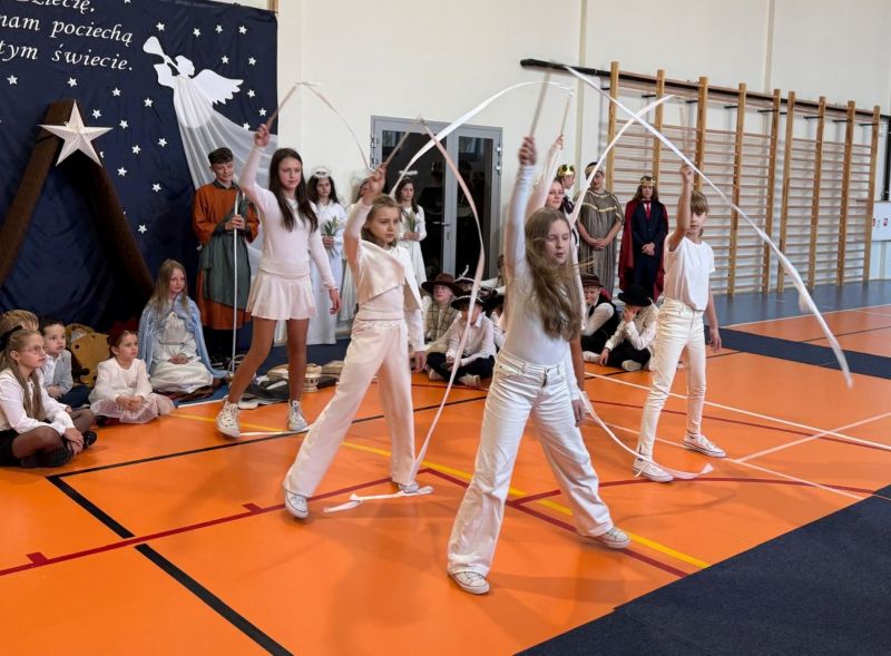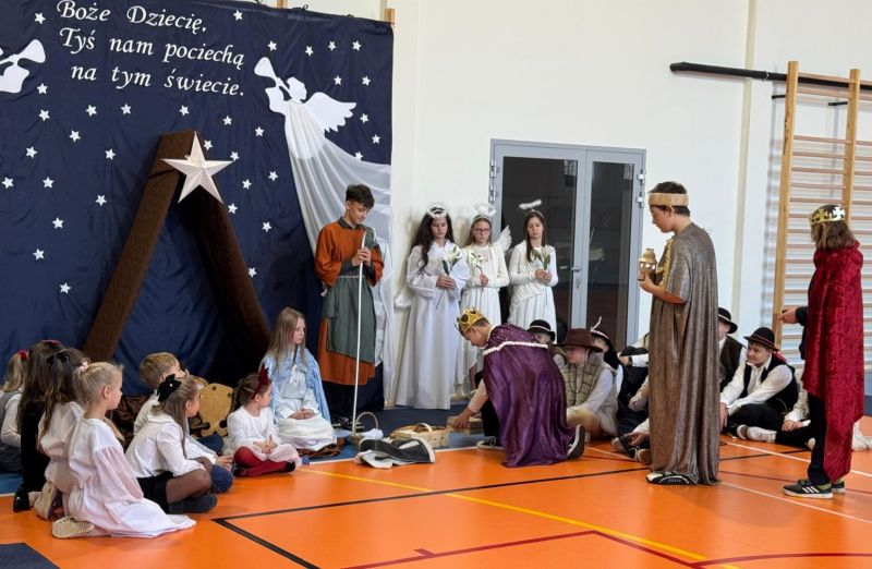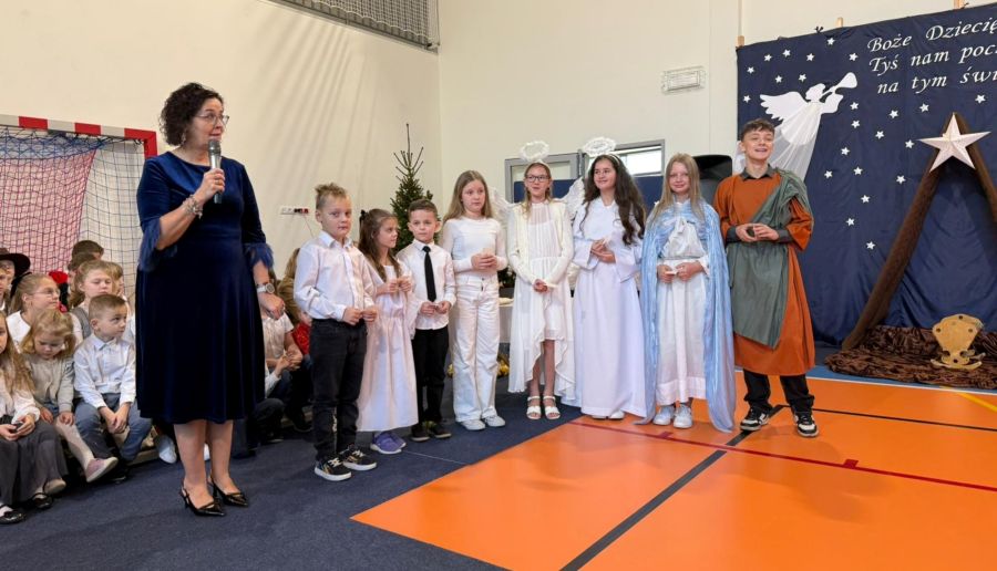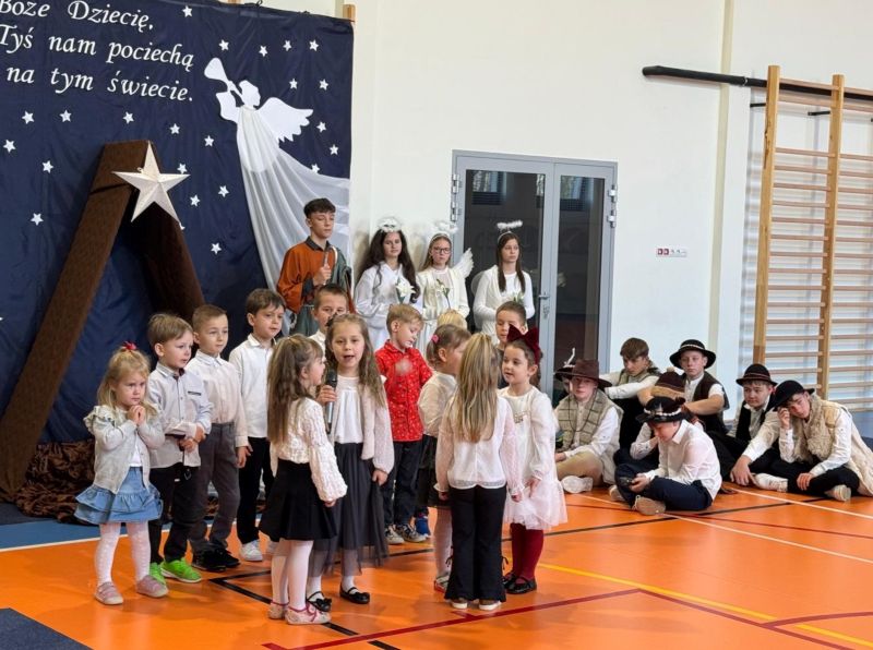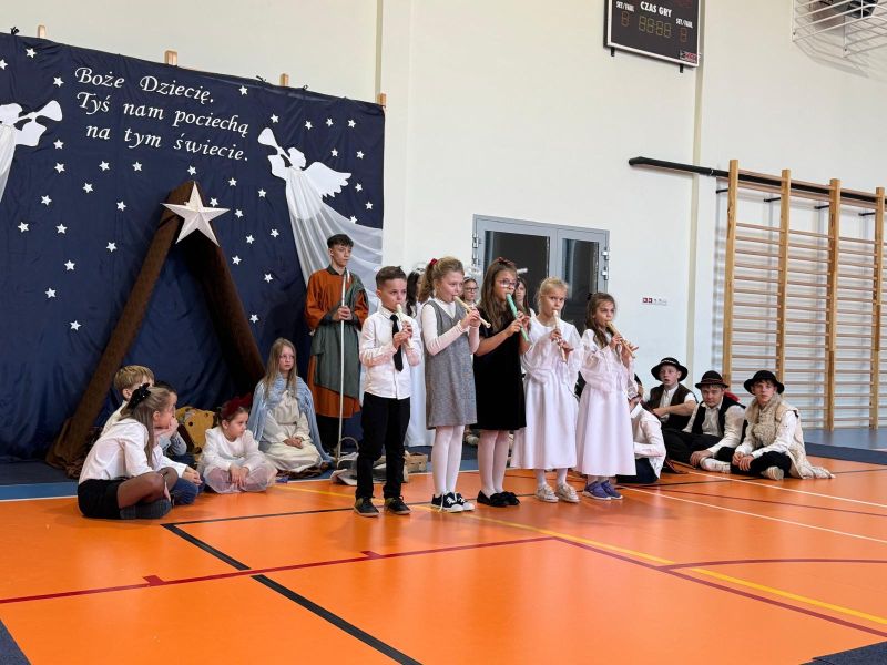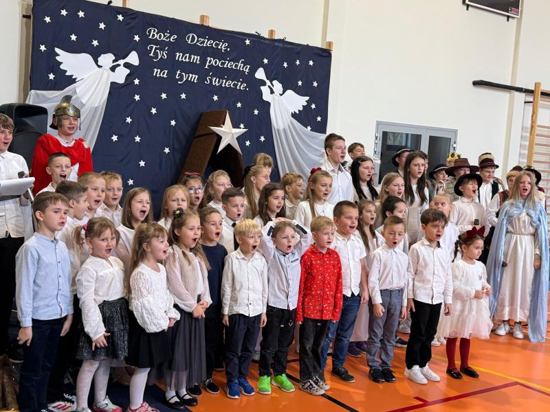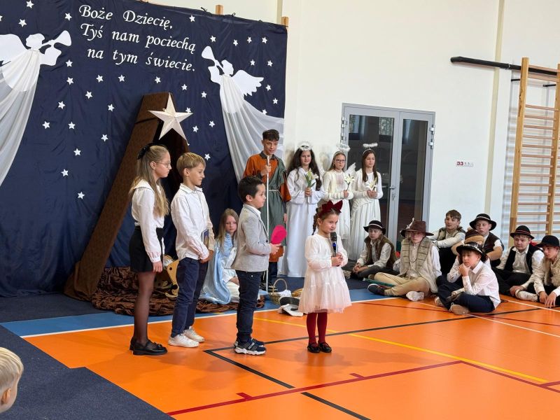 Osoby odpowiedzialne 🙌 za przygotowanie uroczystości jak co roku stanęły przed wyzwaniem wystawienia nowych, wspaniałych i oryginalnych jasełek. 🤱 A nie jest to takie proste, gdy tematyka - historia narodzin Jezusa w Betlejem - jest oczywiście niezmienna. 🌠 Tegoroczny montaż słowno-muzyczny 🎶 został przygotowany przez wychowanków przedszkola oraz uczniów naszej szkoły i opowiadał o tym dlaczego Maryja i Józef wybrali się do Betlejem, kto powiedział pasterzom o narodzinach Jezusa, a także kto złożył hołd Dzieciątku. 🎁 Swoje umiejętności młodzi artyści zaprezentowali przez inscenizację, śpiew oraz taniec. ✨ Przedstawienie, które emanowało spokojem i pokojem, bo takie było jego założenie, wprowadzało widzów w stan autentycznego przeżywania. ❤️ Całość dopełniła piękna dekoracja. ⭐🎄 Symboliczna, ale zarazem efektowna scenografia przenosiła widza do stajenki w Betlejem. 🌠 Choć nie było zmieniającej się scenerii, a wszystko rozgrywało się w ubogiej stajence, to urok tego wystroju w połączeniu z biblijnymi tekstami przenikał głęboko w serce. ❤️